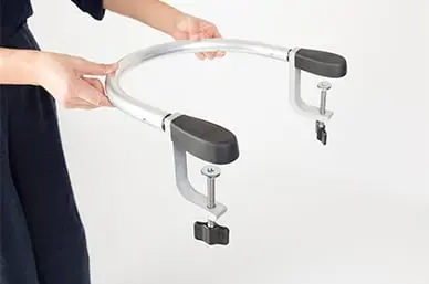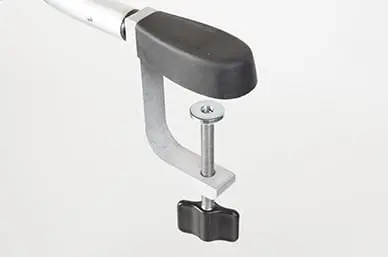 a wide clamp range that fits onto many table or bench surfaces between 2 - 7cm / 1 - 3"