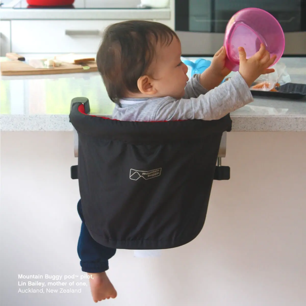mountain buggy pod portable high chair in chilli red colour is perfect for baby_chilli